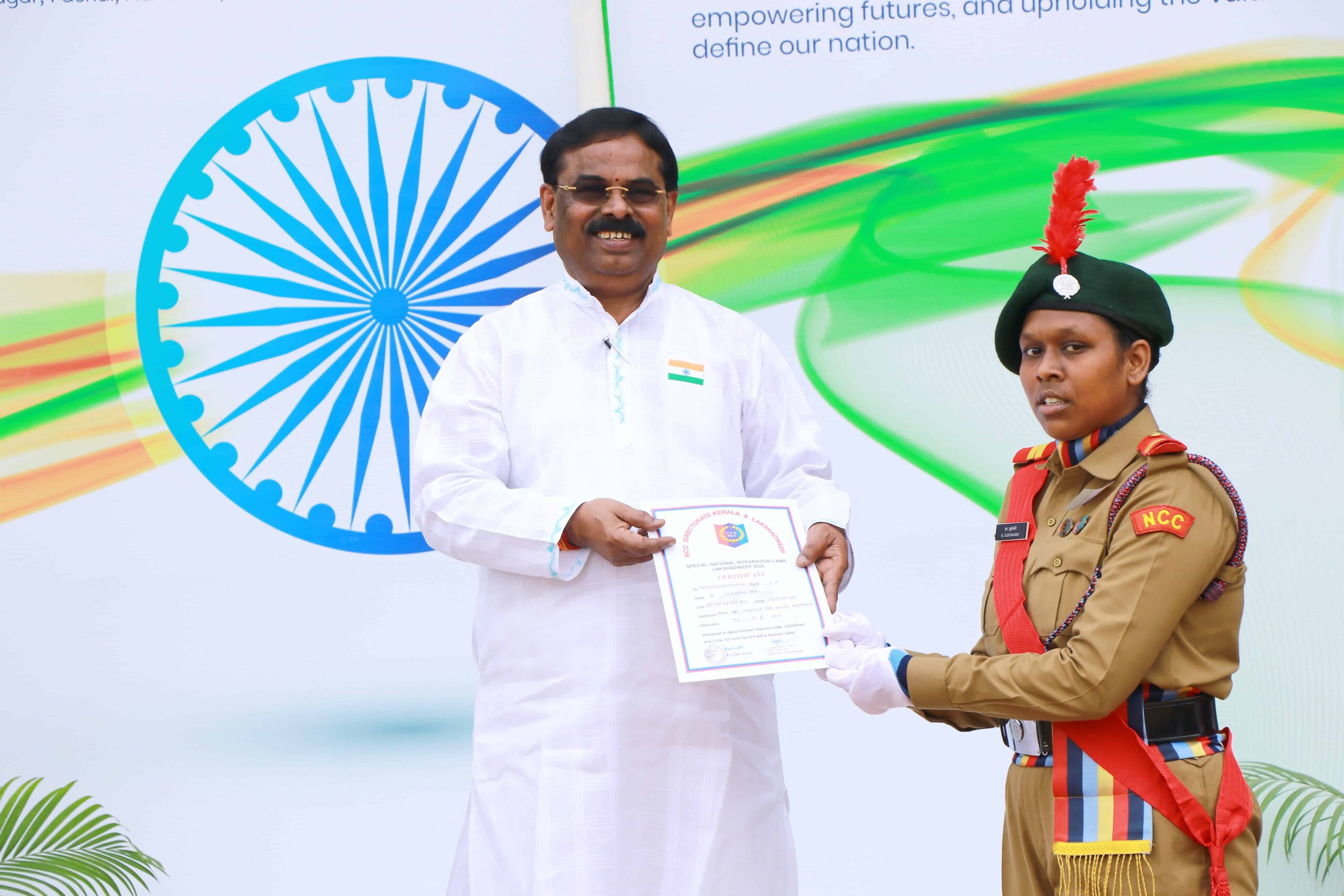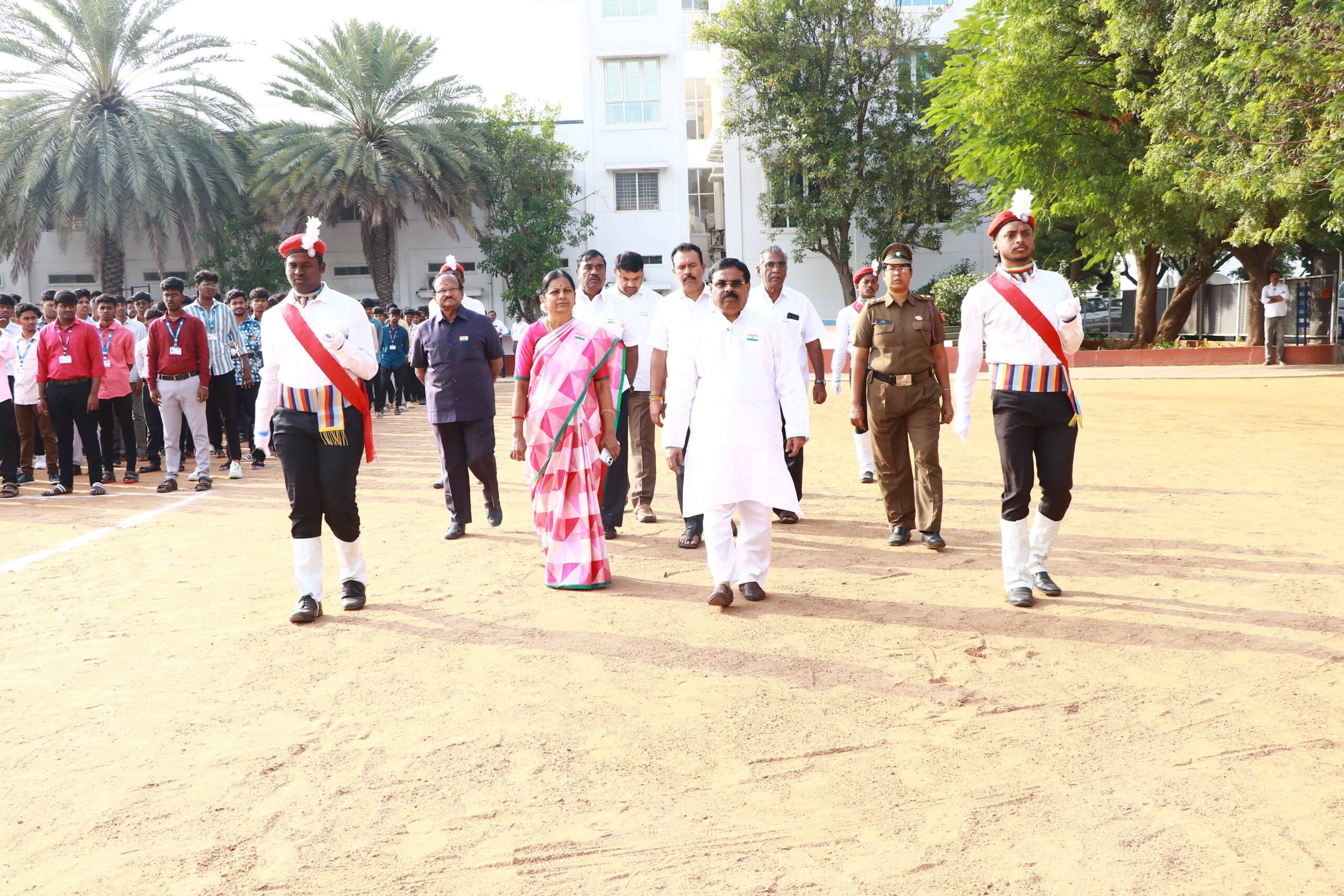 A disciplined and well-synchronized march-past was performed by the students of Paavai Institutions, highlighting their coordination, sharp commands and enthusiasm. Mr.C. Rathnakumar, NSS Program Officer of Paavai Engineering College was congratulated as he was conferred with the Best Blood Donation Camp Organizer Award by the District Collector of Namakkal. M.Subaranjani, III B.Sc CS(AI&DS) an NCC cadet under officer from Pavai Arts and Science College who participated in the Special National Integration Camp at Lakshadweep was appreciated and students who actively contributed to NSS, NCC, Scouts and Guides, were honoured with certificates and prizes.