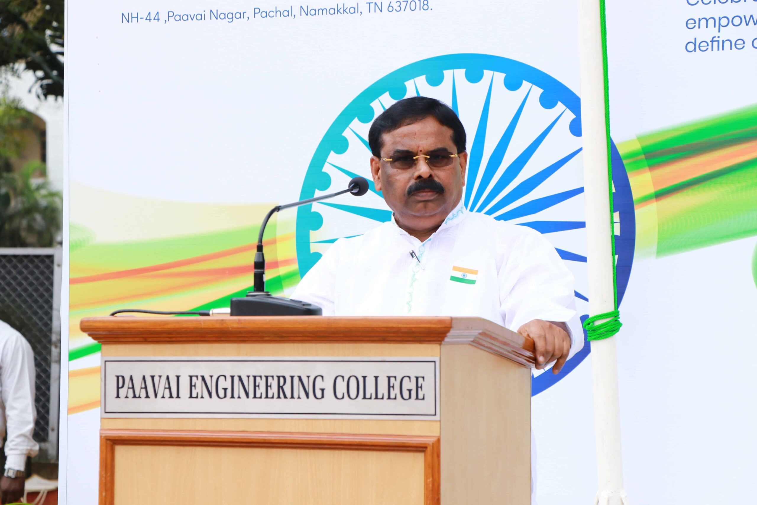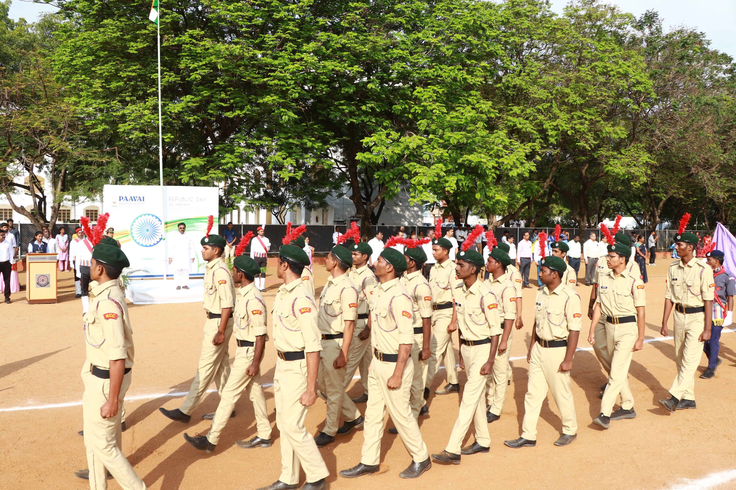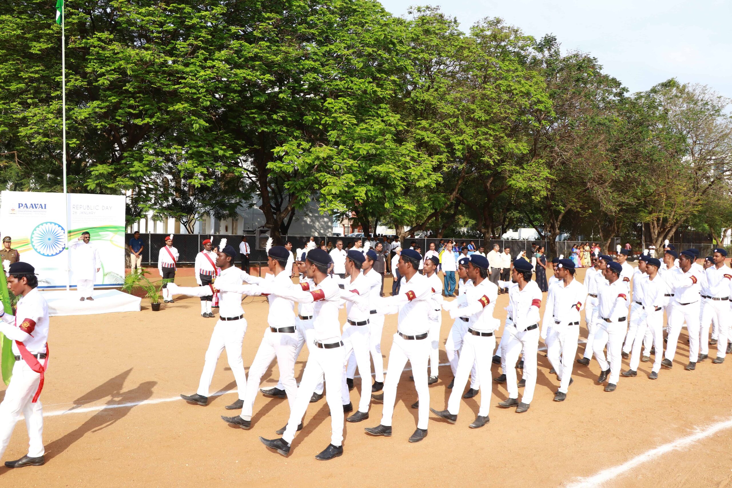 Paavai Educational Institutions celebrated the 77th Republic Day at Kalpana Chawla Open Theatre with great pride and patriotic spirit. The programme commenced with Tamil Thai Vazhthu. The celebration was presided over by Shri. CA. N.V. Natarajan, Founder and Chairman, Paavai Institutions. He hoisted the National Flag and delivered the Republic Day address.