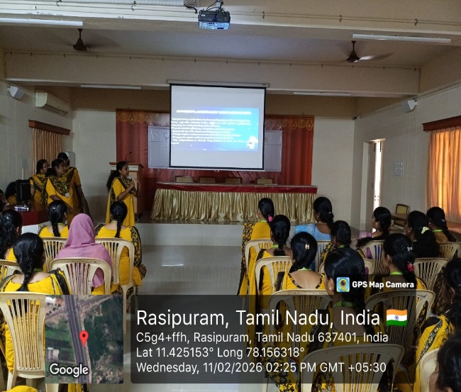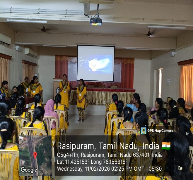 The program commenced with a prayer song, followed by a warm welcome address delivered by Ms. A. Gomathisri of II B.Sc. CS (AI & DS) and Ms. K. Sahaana of I B.Sc. CS (AI & DS). The event was hosted by Ms. S. Rethiga and Ms. M. S. Salma of II B.Sc. CS (AI & DS).