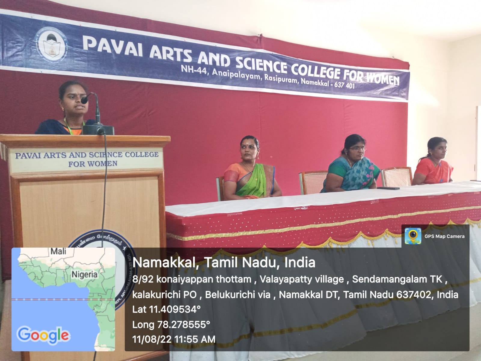 An Oratorical Competition was conducted in Pavai Arts and Science College for Women on 11.08.2022 in Keerthi Hall at 3.00 p.m. The programme started with prayer song by our students. A.Vedhavarshini of II B.A English welcomed the gathering. Dr.J.Thavamani, Principal, Pavai Arts & Science College for Women, presided over the function.