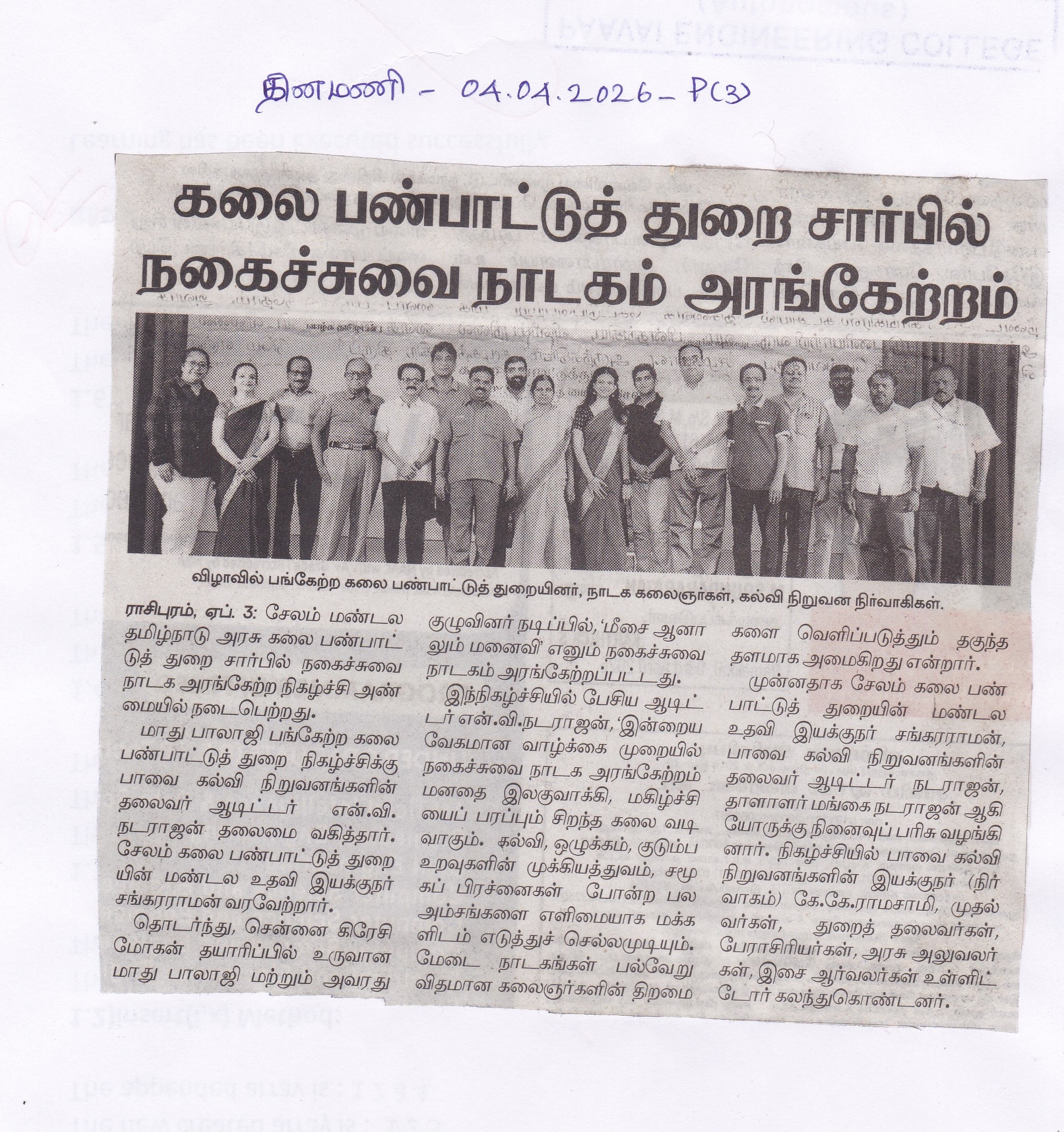 The “Tamil Nadu Heat Wave Action Plan Awareness” programme was conducted successfully at Pavai Arts and Science College for Women on 16.04.2026. Dr. E. G. Wesley, Namakkal District Youth...