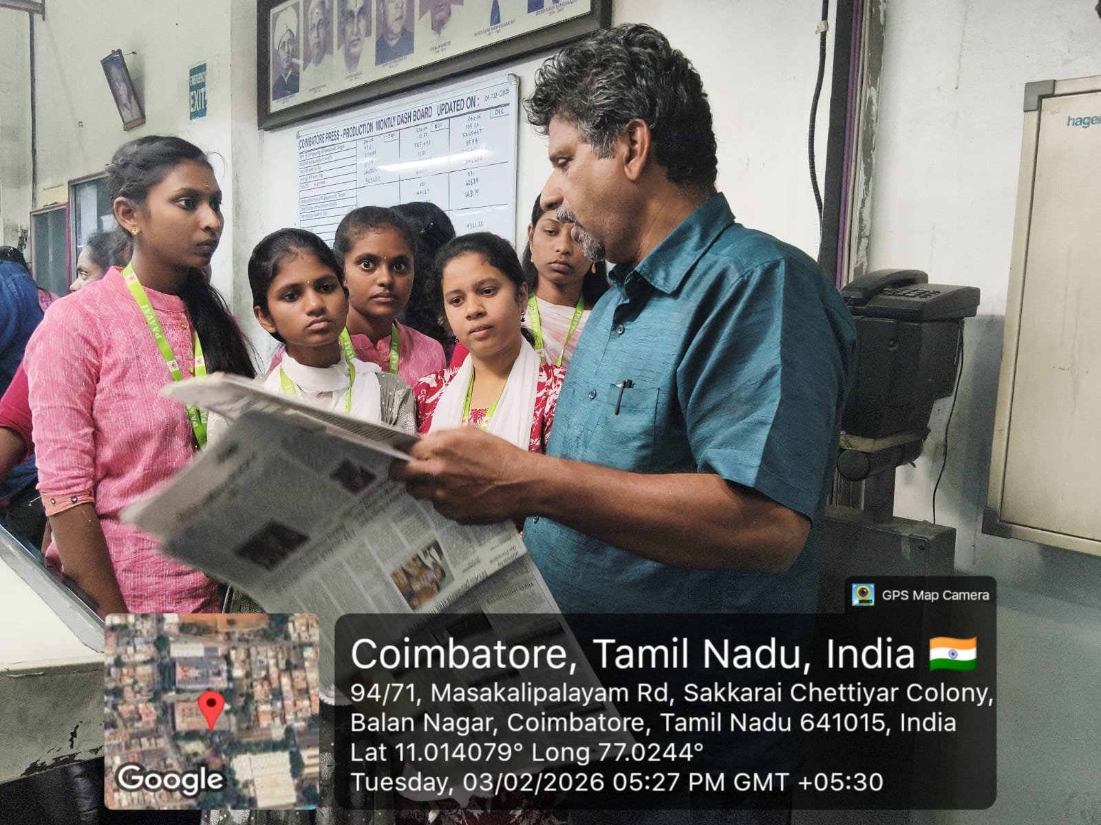 The Department of Commerce, Pavai Arts and Science College for Women, organized an industrial visit for first-year students (85 students) to The Hindu Publishing Private Limited, Coimbatore, on 03.02.2026. The students were accompanied by four staff members.