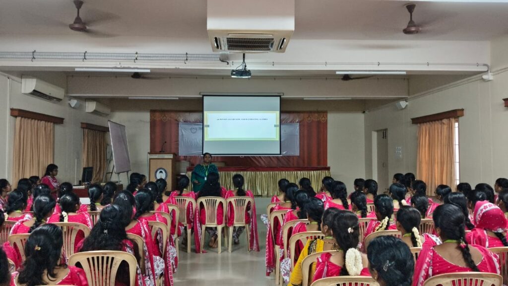 The program began with a prayer song, followed by a warm welcome address by Ms. A. Gomathisri of II B.Sc. Computer Science (AI & DS) and Ms. A. Devasriakshaya of II BCA. Ms. M. Kanishka of III BCA served as the event host.
