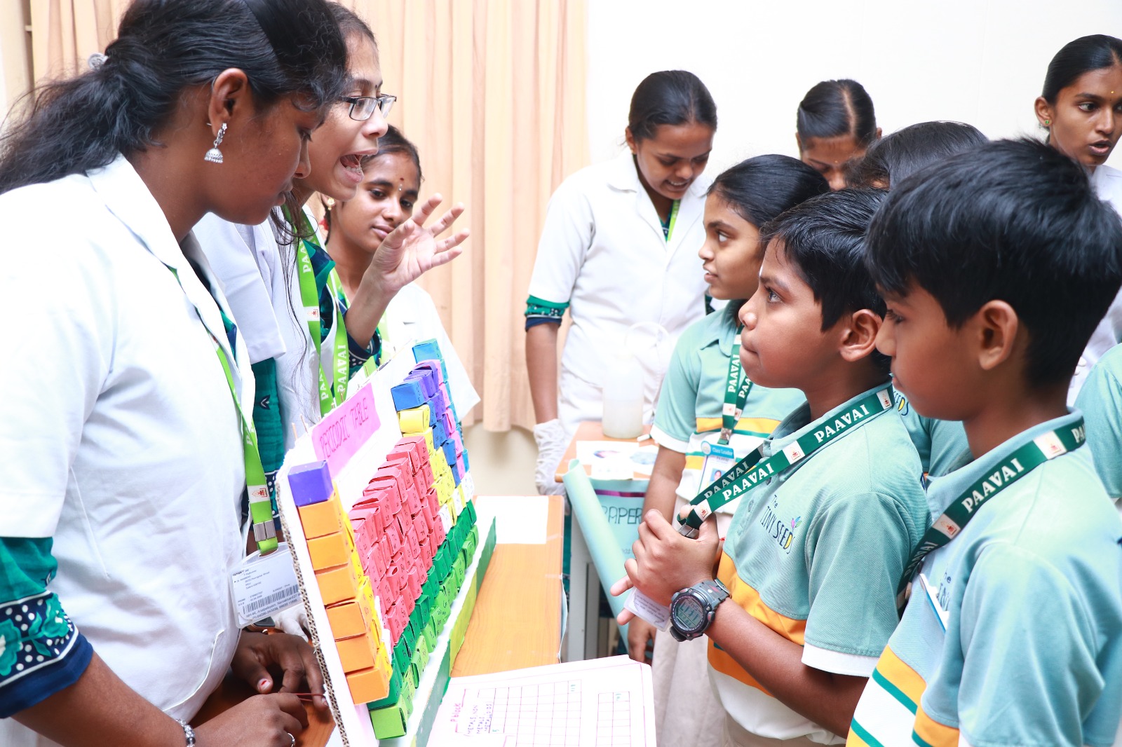 The exhibition was conducted at Madhuram Open Hall on 13.02.2026. Students from Paavai Vidhyasaram School visited the campus and actively explored the science models.