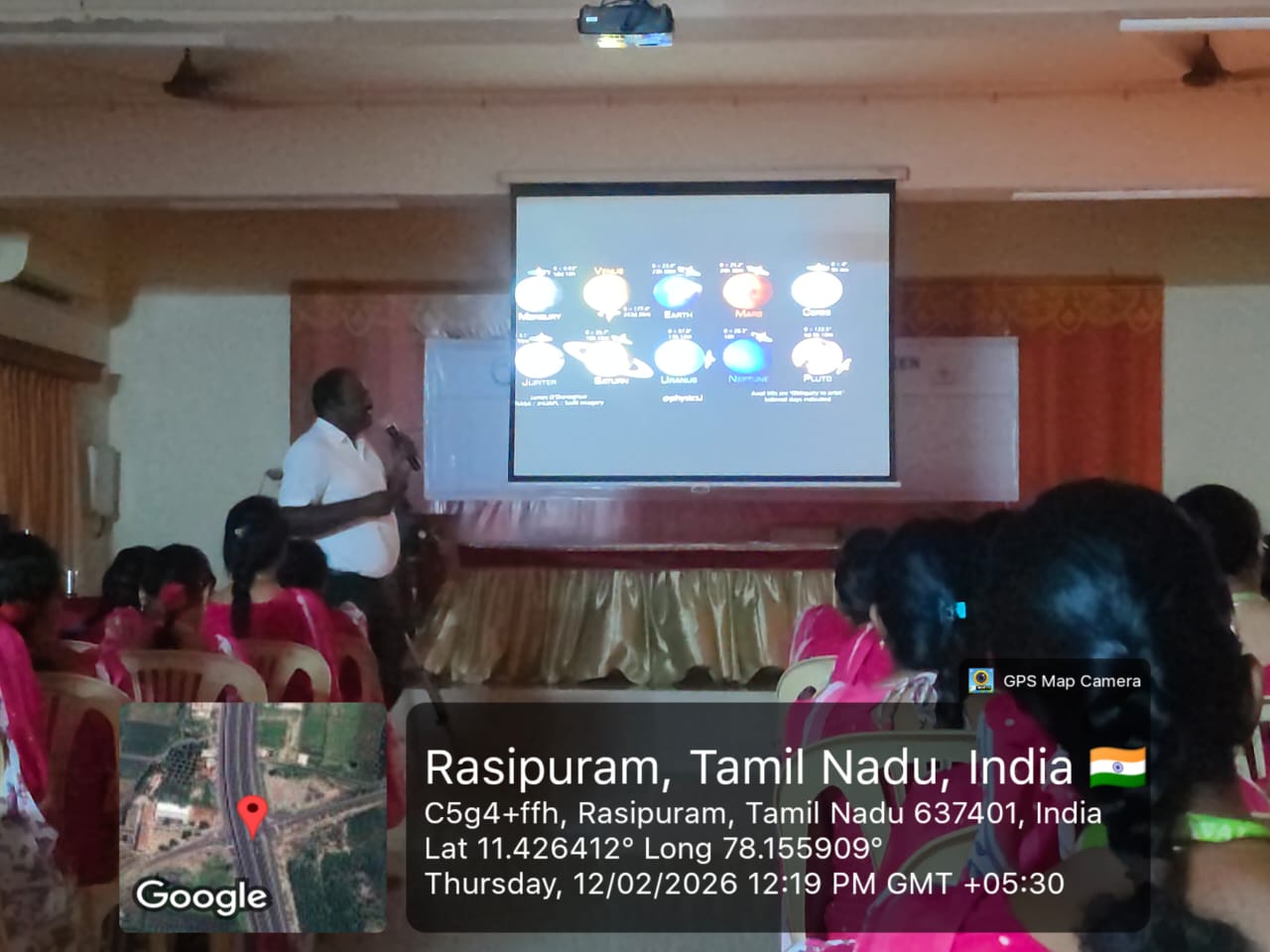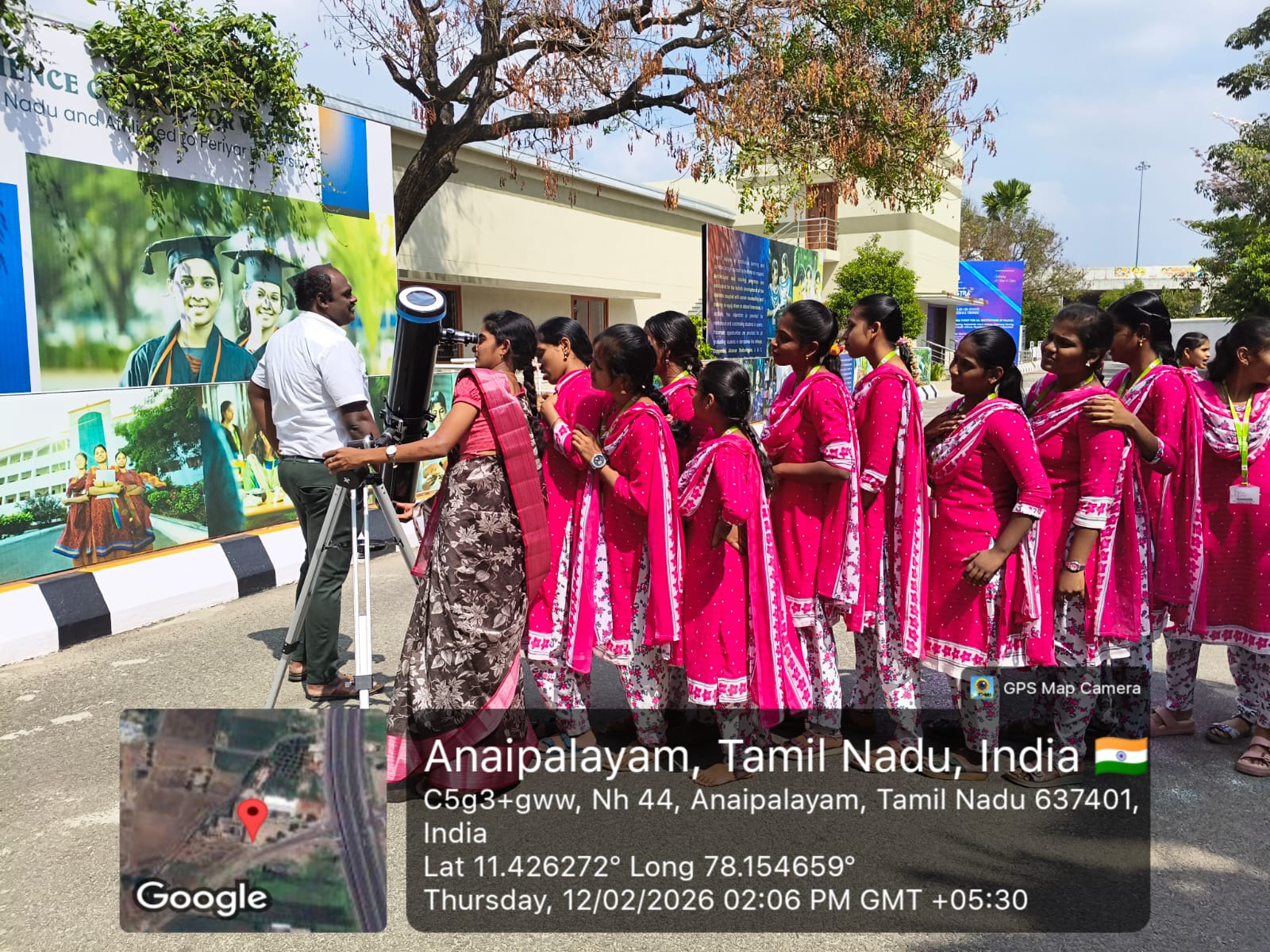 The Departments of Mathematics, Chemistry, Physics, and Geology, in association with the Namakkal Astro Club, jointly organized a two-day programme on the occasion of National Science Day at Keerthi Hall, Pavai Arts and Science College for Women, on 12.02.2026 and 13.02.2026.