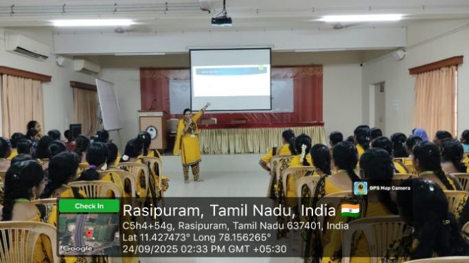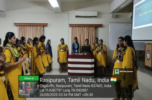 The program began with a prayer song, followed by a warm welcome delivered by Ms. A. Gomathisri of II B.Sc. Computer Science (AI & DS) and Ms. A. Devasriakshaya of II BCA. Ms. R. K. Santhiya of III B.Sc. Computer Science (AI & DS) served as the event host.