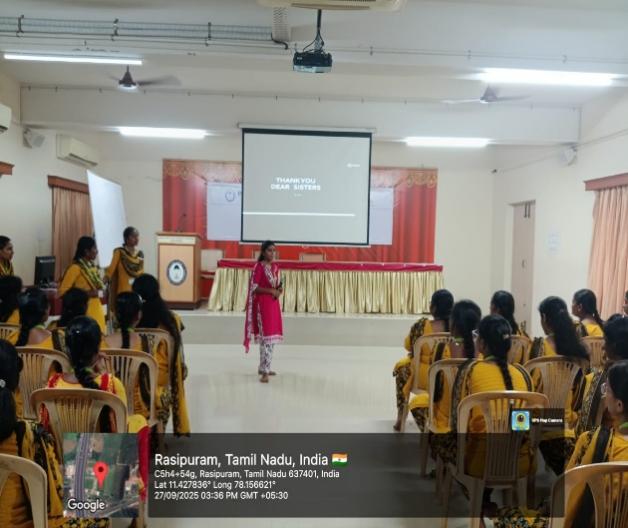 The program began with a prayer song, followed by a warm welcome delivered by Ms. A. Gomathisri of II B.Sc. Computer Science (AI & DS) and Ms. A. Devasriakshaya of II BCA. Ms. B. N. Durgasree of III B.Sc. Information Technology hosted the event.