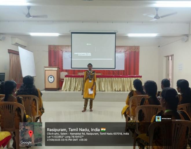 The next session included a paper presentation by Ms. V. Ronisha of III B.Sc. Information Technology on the topic “TechShield 2K25.” This session was highly informative and interactive, providing valuable insights into AI tools and their applications.