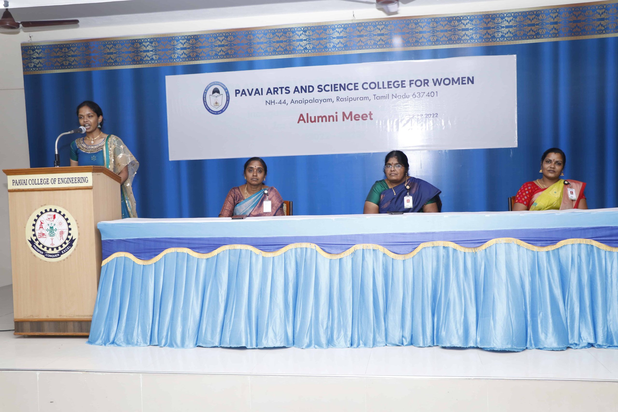 The Alumni Meet 2023 was held at Pragathi Hall on 18.12.2022 in the presence of Dr.J.Thavamani, Principal, Pavai Arts and Science College for Women, Anaipalayam.