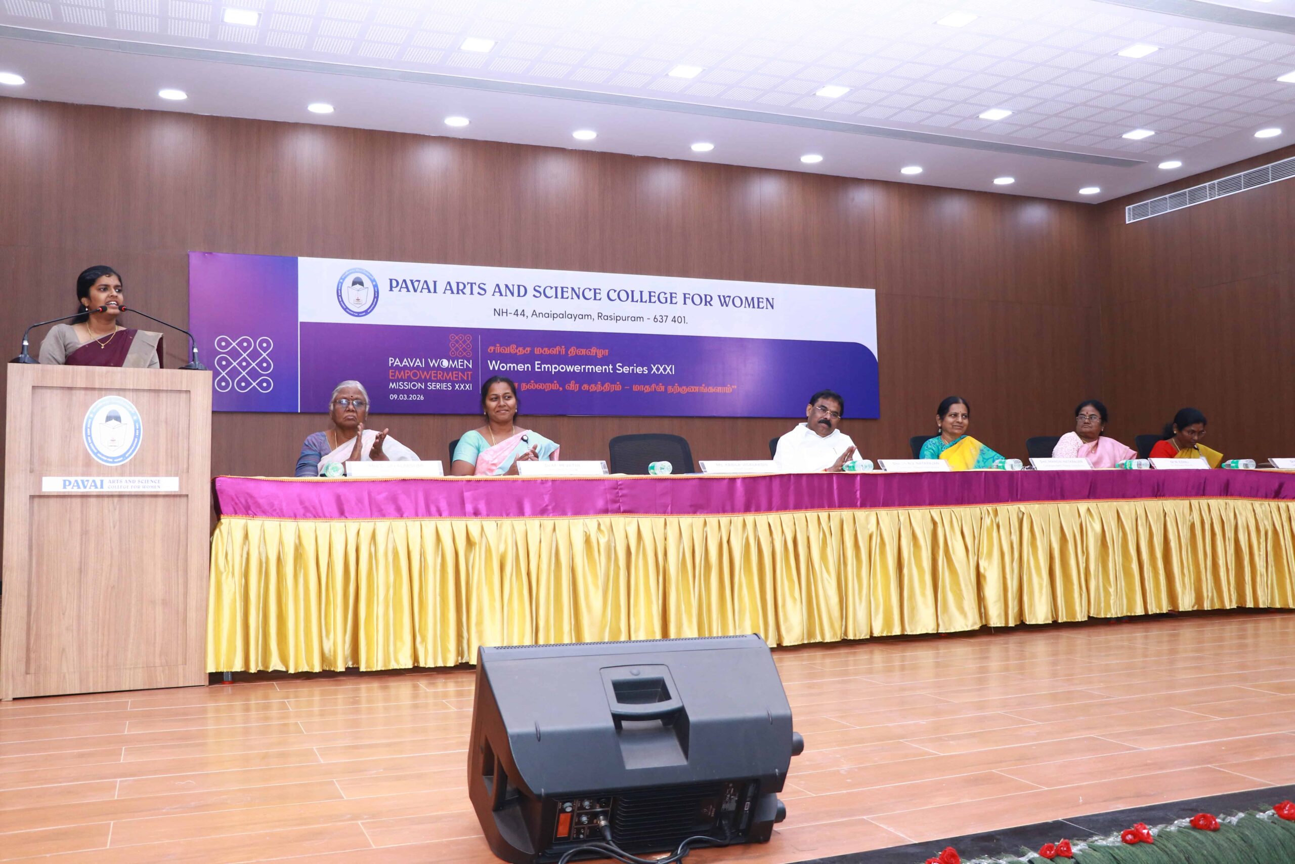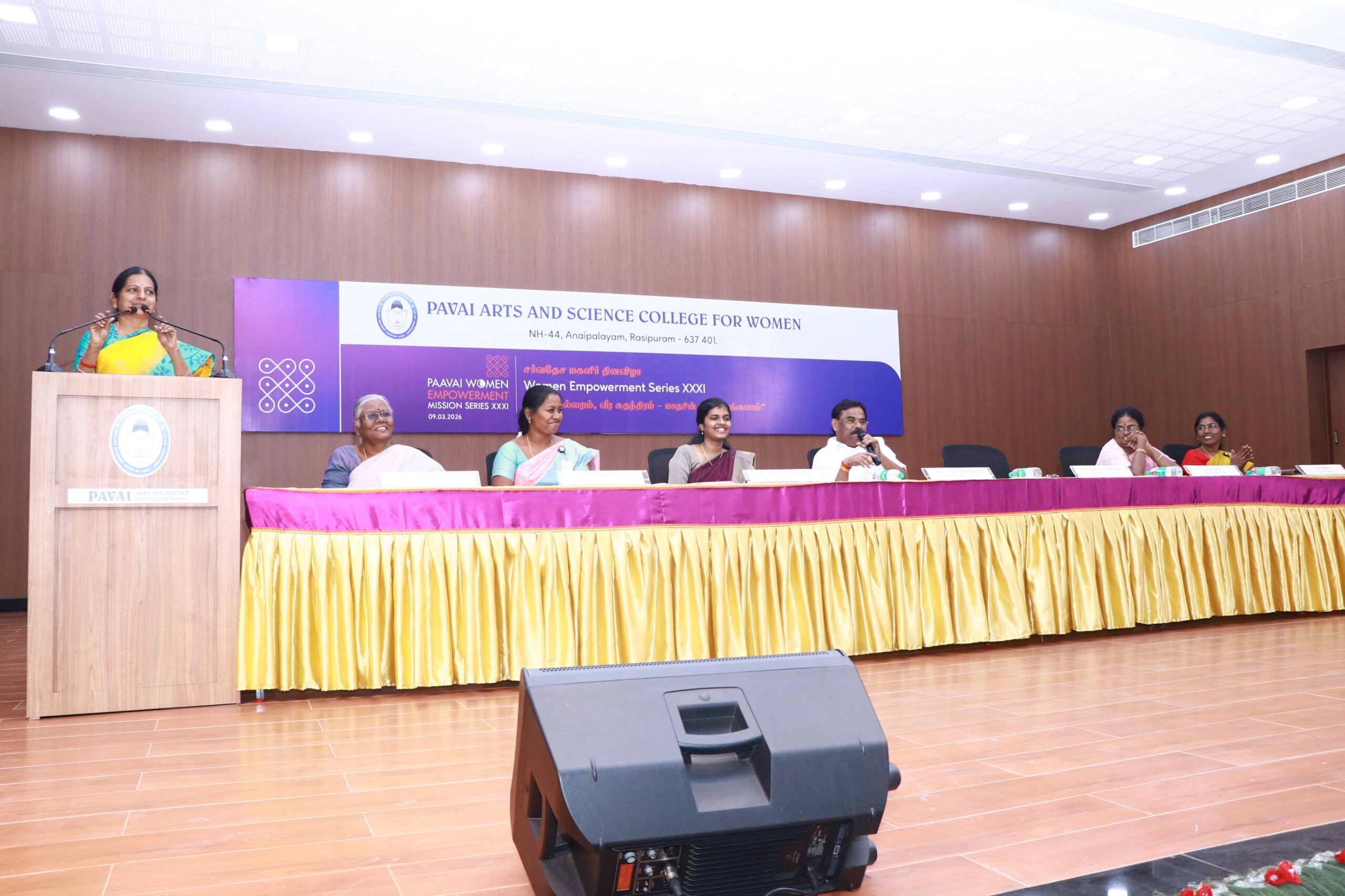 The Women Empowerment Series organized its 31st event in celebration of International Women’s Day with the theme “ஞான நல்லறம் வீர சுதந்திரம் மாதரின் நற்குணங்களாம்” on 9th March 2025 at Dhiram Hall, Paavai Arts and Science College for Women, Anaipalayam.